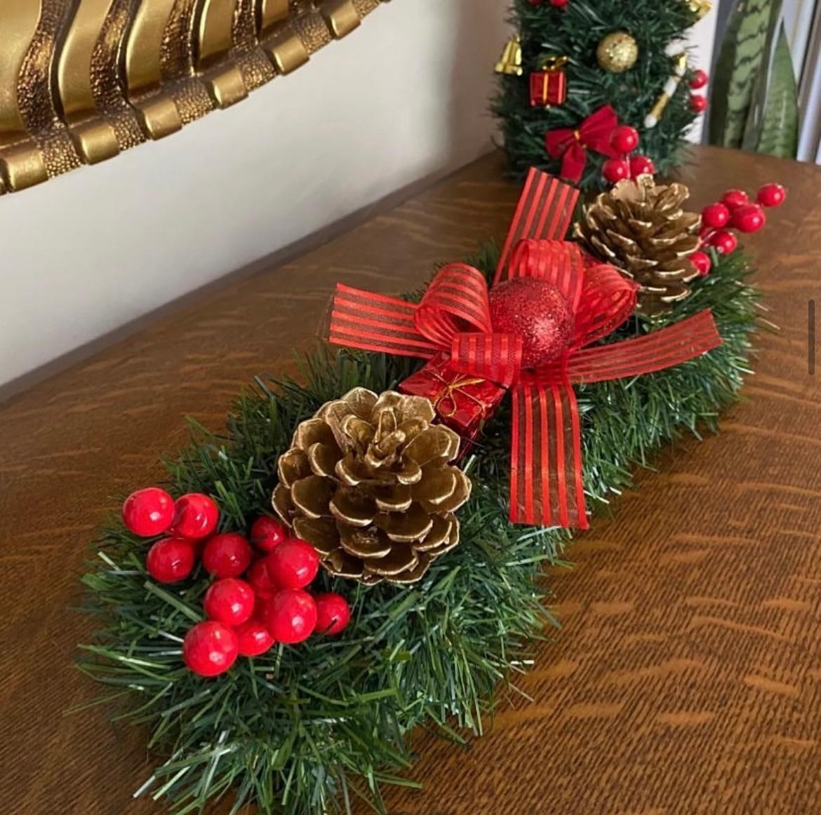 🎄 Yılbaşı Masa Dekoru 40x15 cm, kırmızı detayları, kozalakları ve yeşil dallarıyla evinize sıcak bir yılbaşı ruhu katar. İster yemek masanızda ister sehpanızda kullanın, bulunduğu ortama hemen neşe ve şıklık getirir. ✨