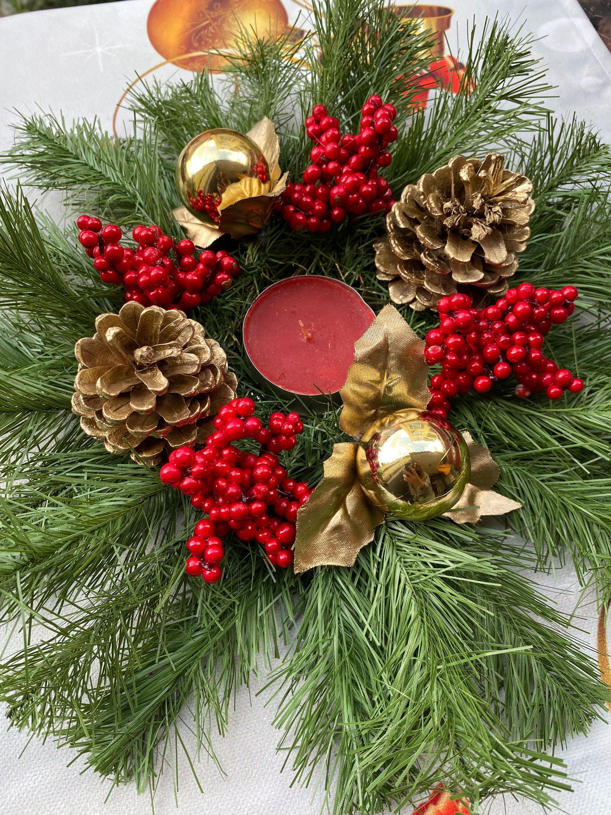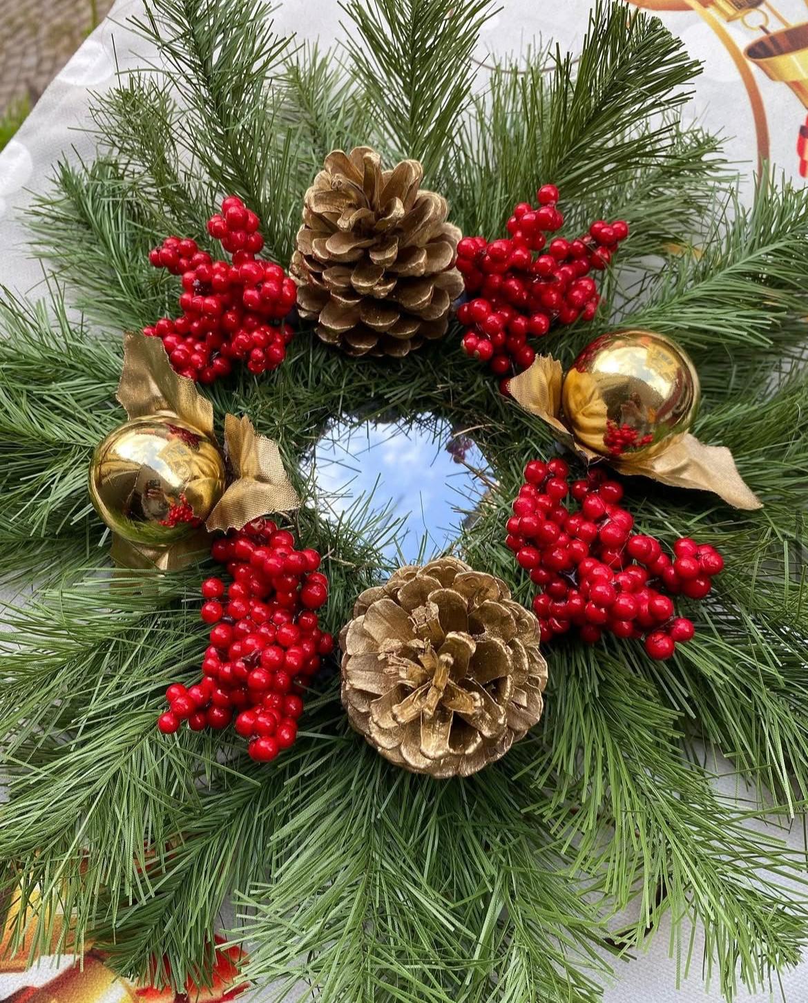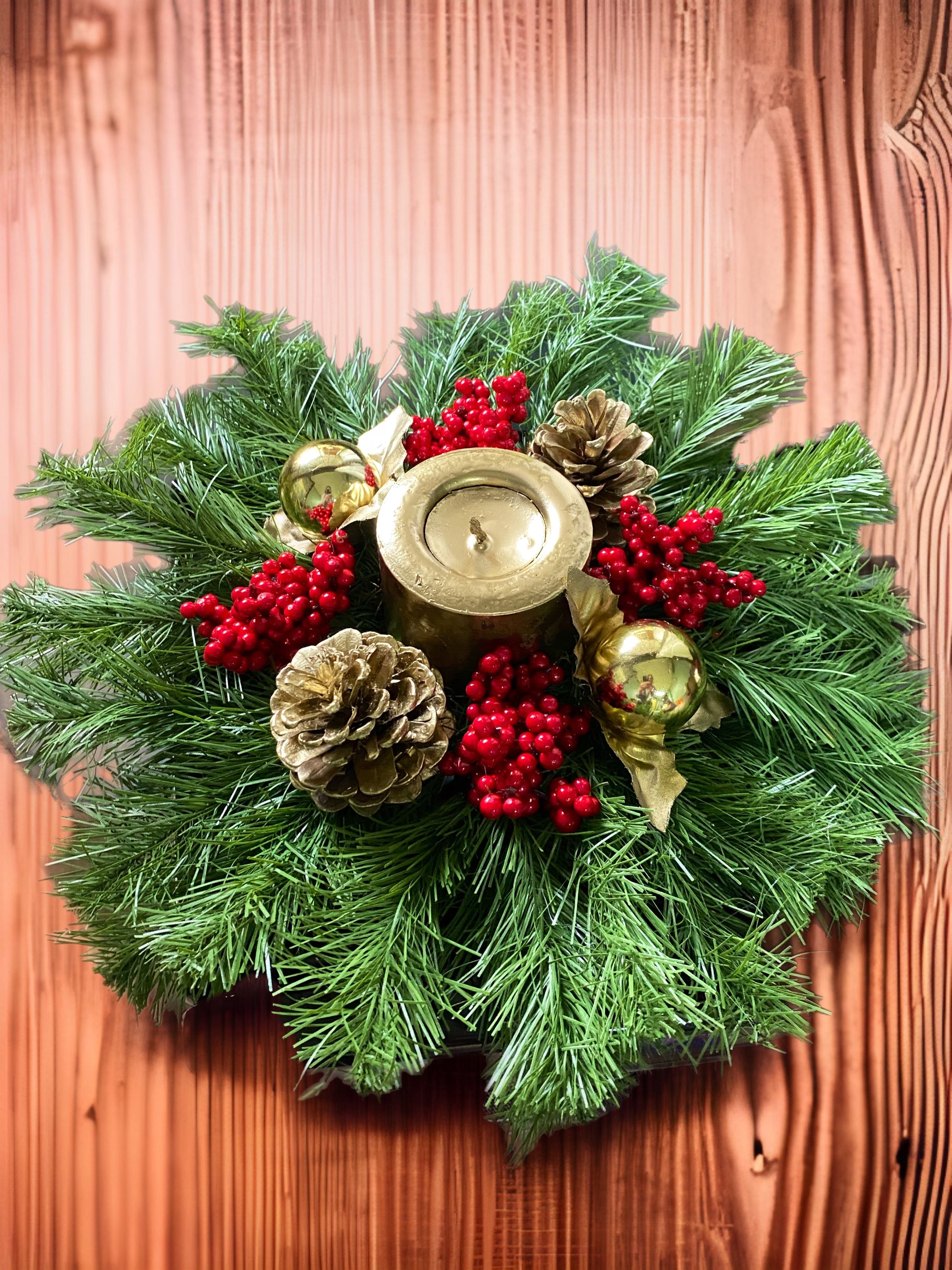 ✨ Yılbaşı Çam Kozalaklı Mumluk Dekor, evinize sıcaklık ve zarafet katar. Doğal çam dalları, kırmızı meyveler ve altın detaylarla yılbaşı sofralarınıza şık bir atmosfer getirir. 🎄🕯️